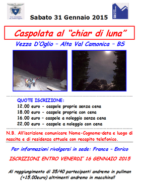 18 gennaio 2015: GIORNATA NAZIONALE DI PREVENZIONE INCIDENTI DA VALANGA ai Piani di Bobbio (LC) con SICURIinMONTAGNA ---> Informazioni in Sede (Osvaldo Noli) Confermare la presenza il prima possibile e non oltre martedì 13. Posti limitati. Partecipazione gratuita.