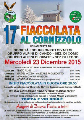 23 dicembre 2015: 17a Fiaccolata al Cornizzolo ---->Informazioni in Sede CAI VILLASANTA il martedì e il venerdì dalle ore 21.00